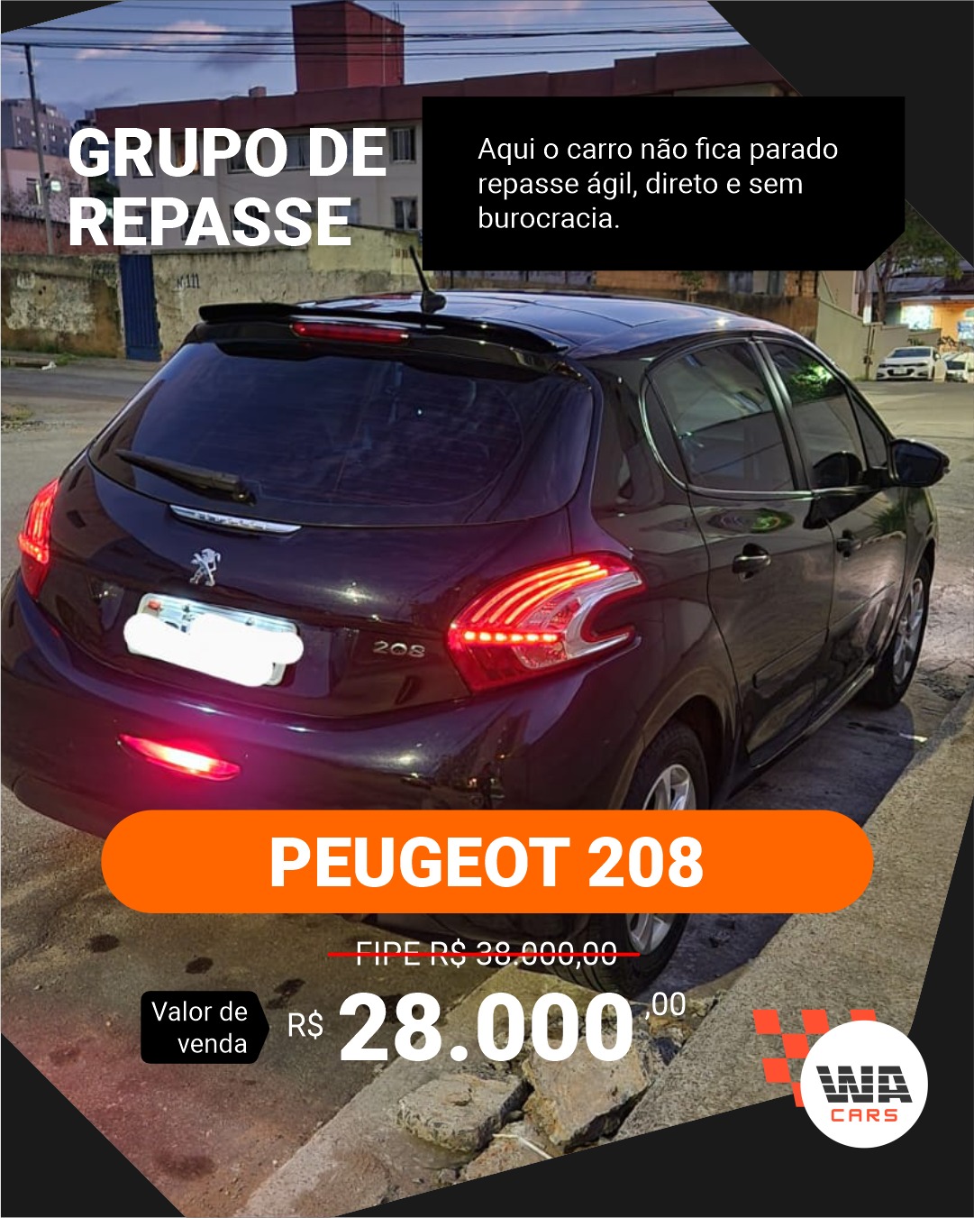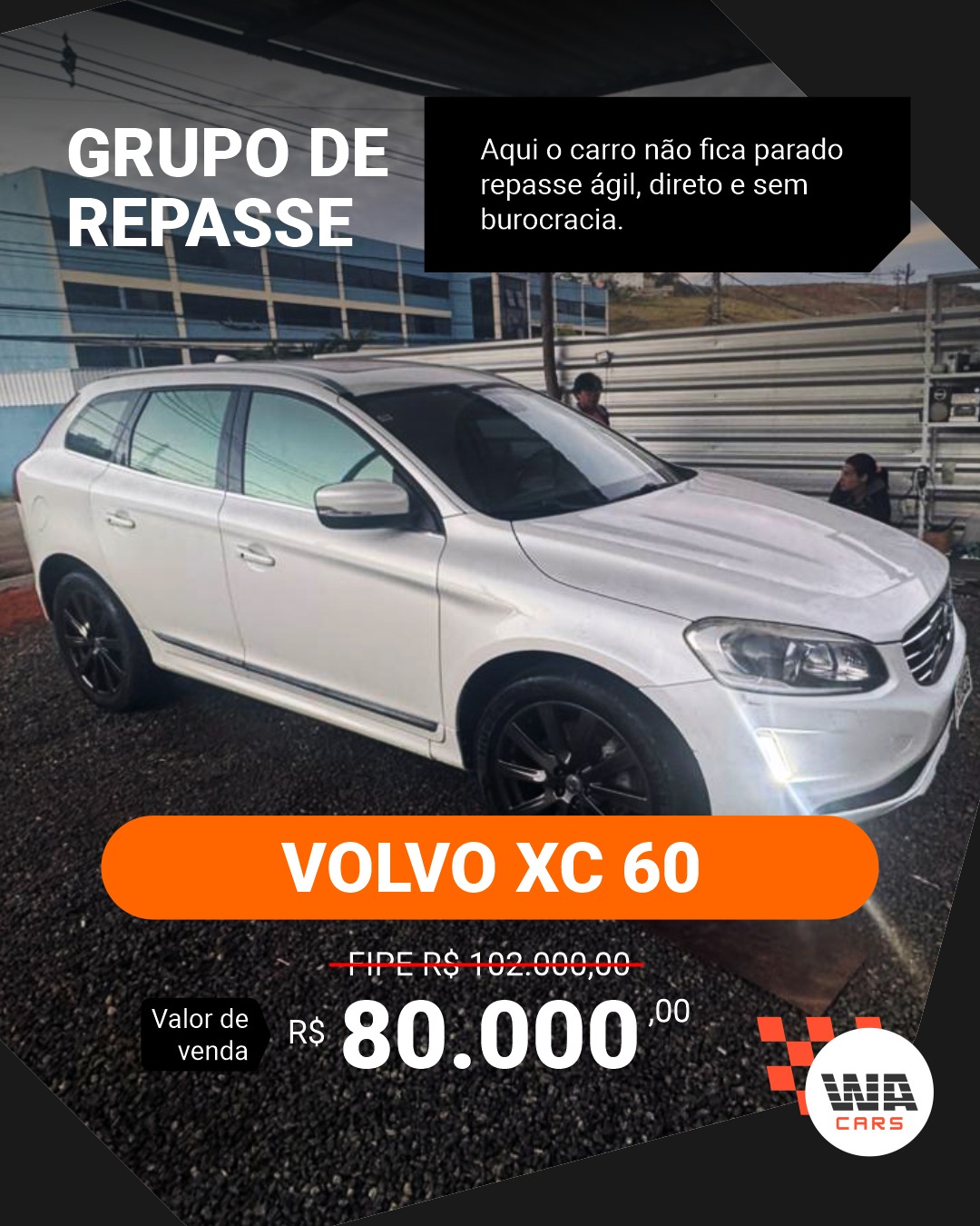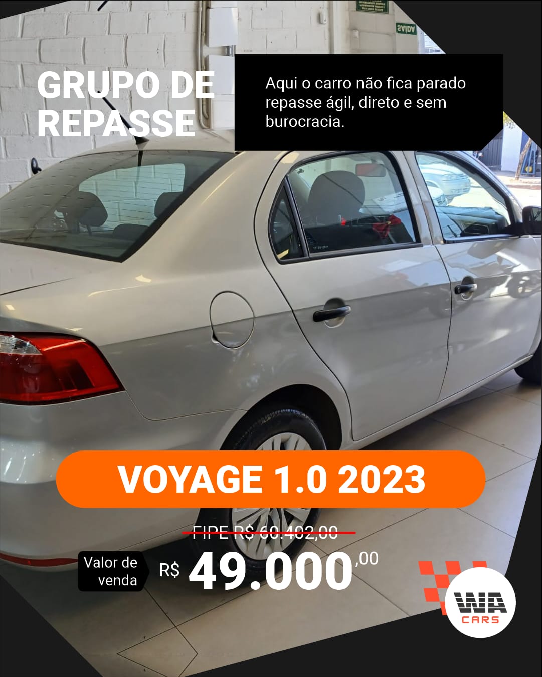 Além disso, eu e minha equipe oferecemos uma assistência completa, não apenas no momento da compra, mas também com o exclusivo MÉTODO WA criado para potencializar os resultados e garantir que você realmente faça dinheiro com os carros adquiridos através da WA Cars.
